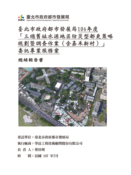 三總舊址周邊都市計畫案除因市府財政困難外,尚有土地權屬複雜、文資保存及違占建等議題,致該地區尚未依都市計畫執行。上開議題業已衍生環境窳陋及公共安全疑慮,當地居民期望儘速開闢,加速地方發展,台北市政府爰辦理三總舊址水源地區防災型都更策略規劃作業,考量後續之規劃及開發方式之評估涉土地權屬、現況調查、地上物查估等相關前置作業。